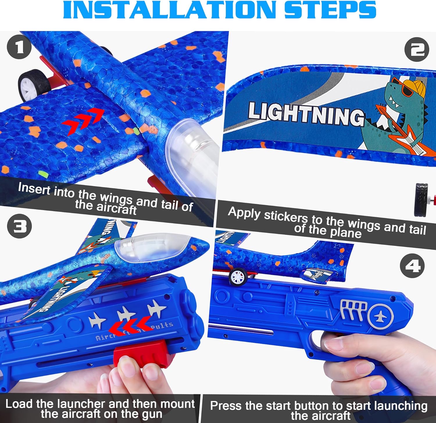 - ✈✈Fun Ways To Play - Foam glider-led plans can not only use the airplane launcher to achieve flight, but also can throw airplane toys into the sky and ground manually, or slide by hand boys toys. This plane brings endless fun to children and outdoor toys and more novel ways to play are waiting for you to discover! In addition, glider planes for kids have no restrictions on the launch site, you can play indoors and outdoors!